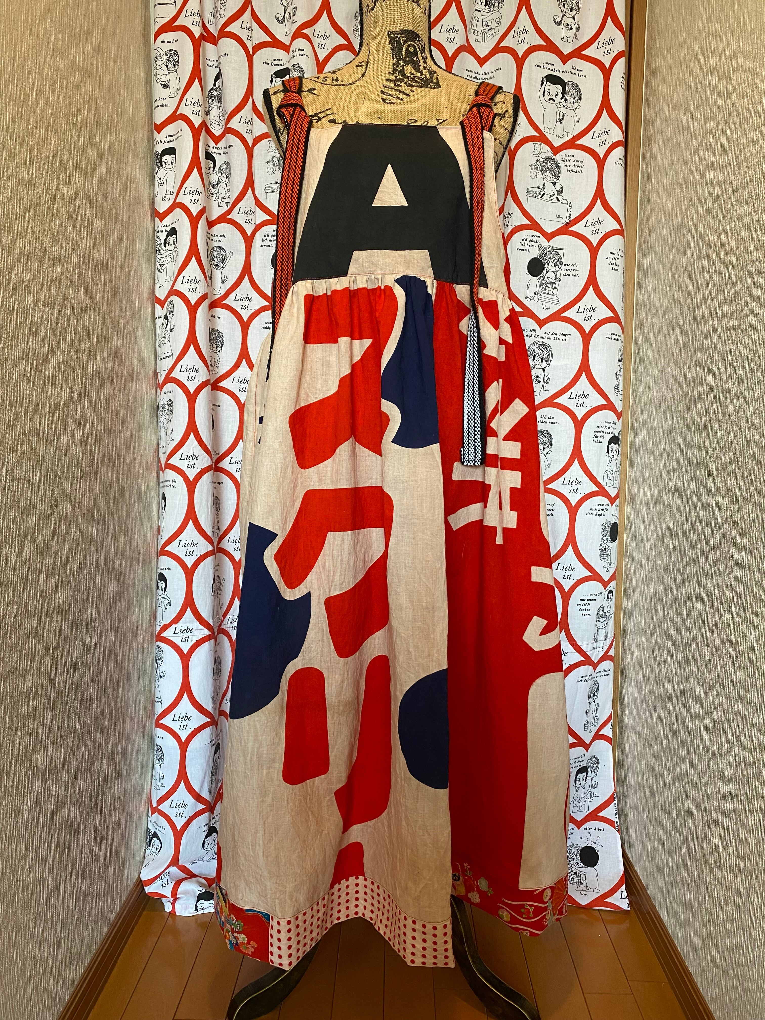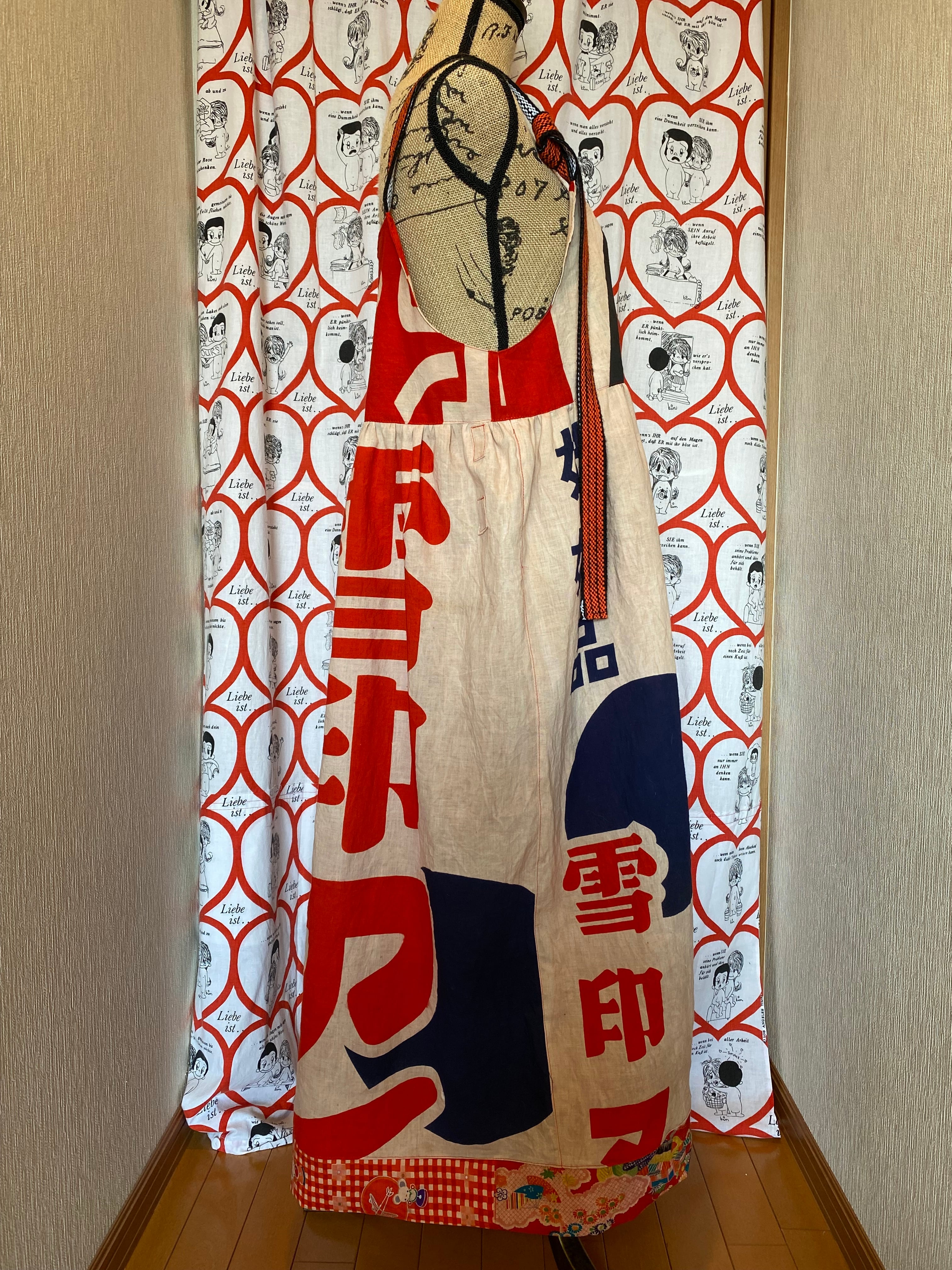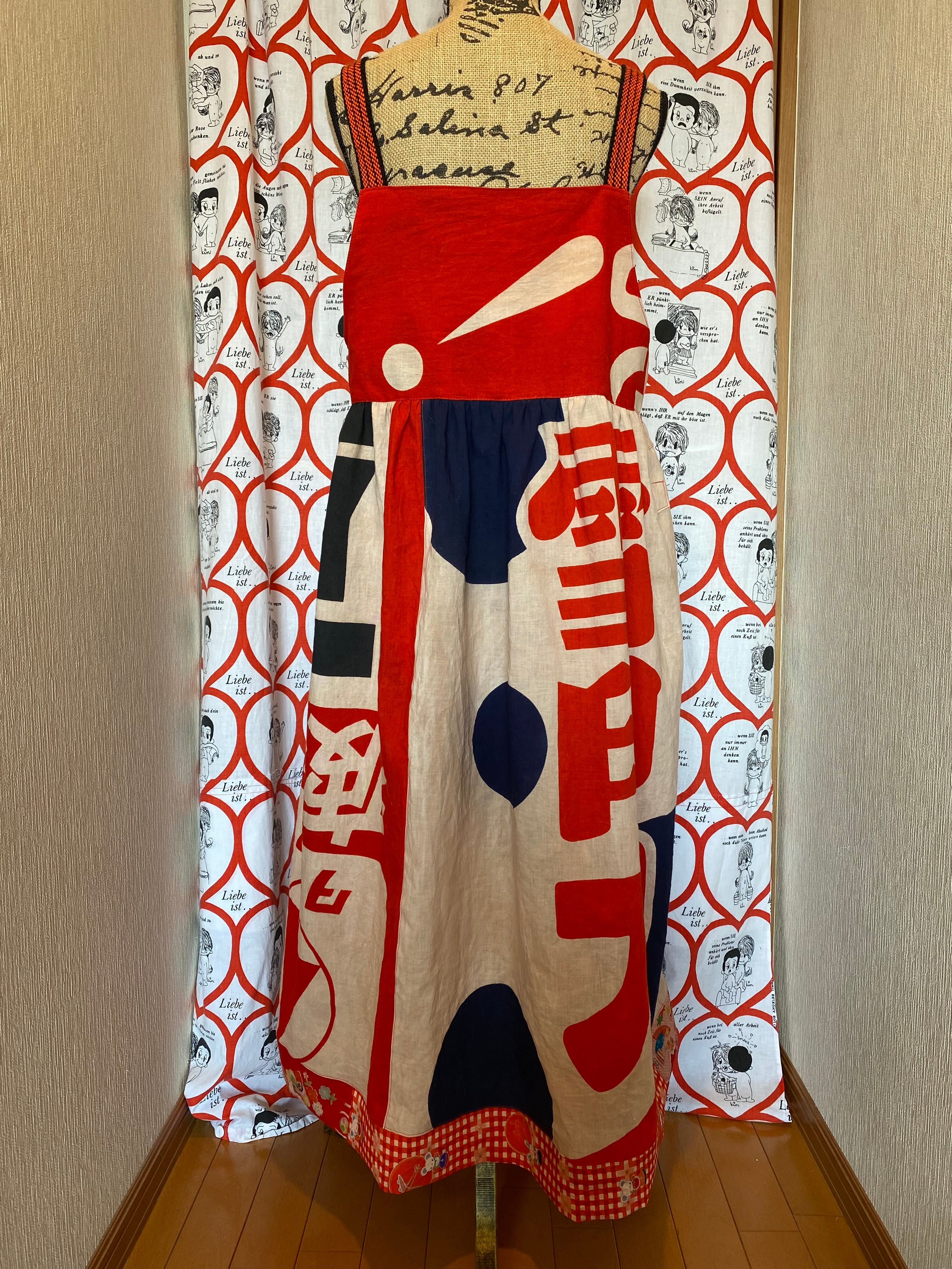 リメイク 昭和レトロ広告旗のぼり旗柿渋染めリメイクジャンドレワンピース