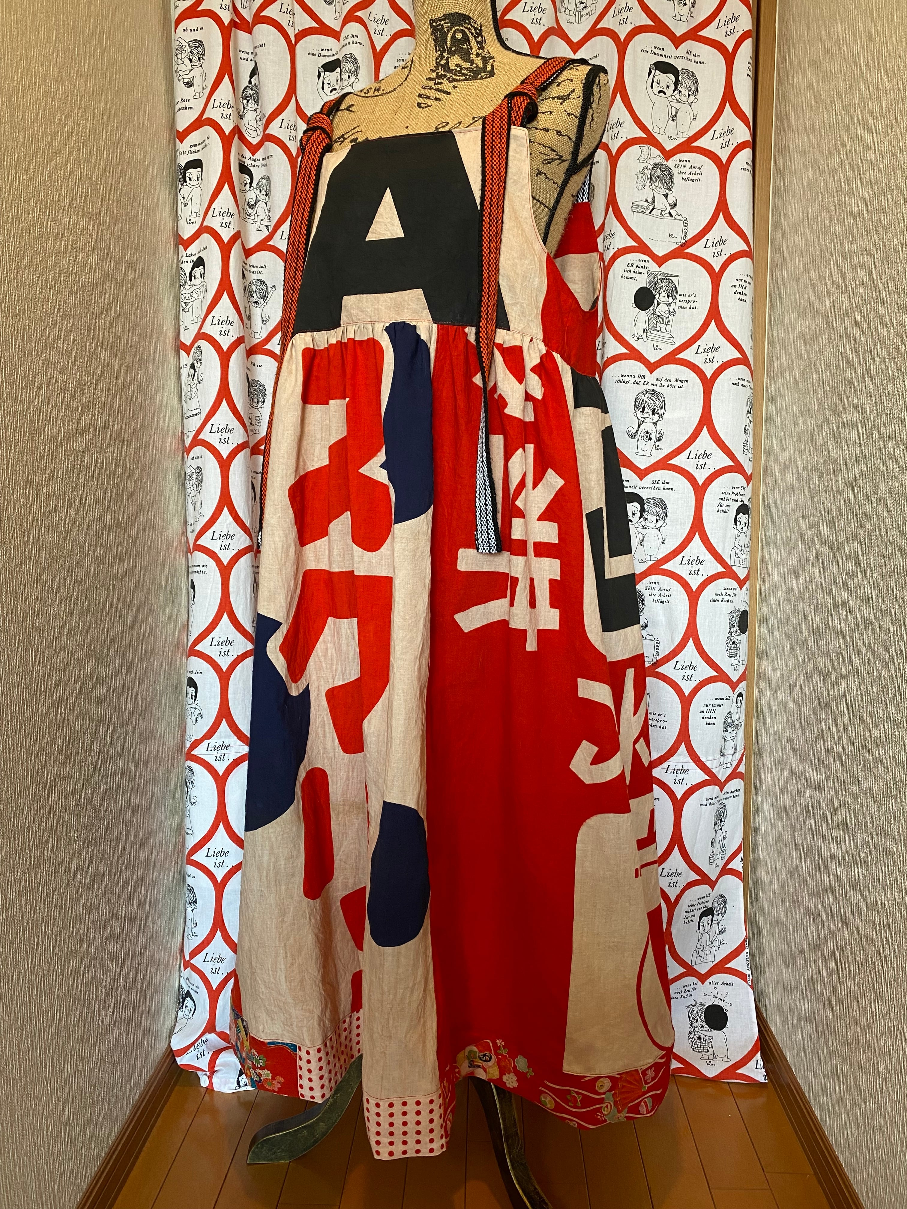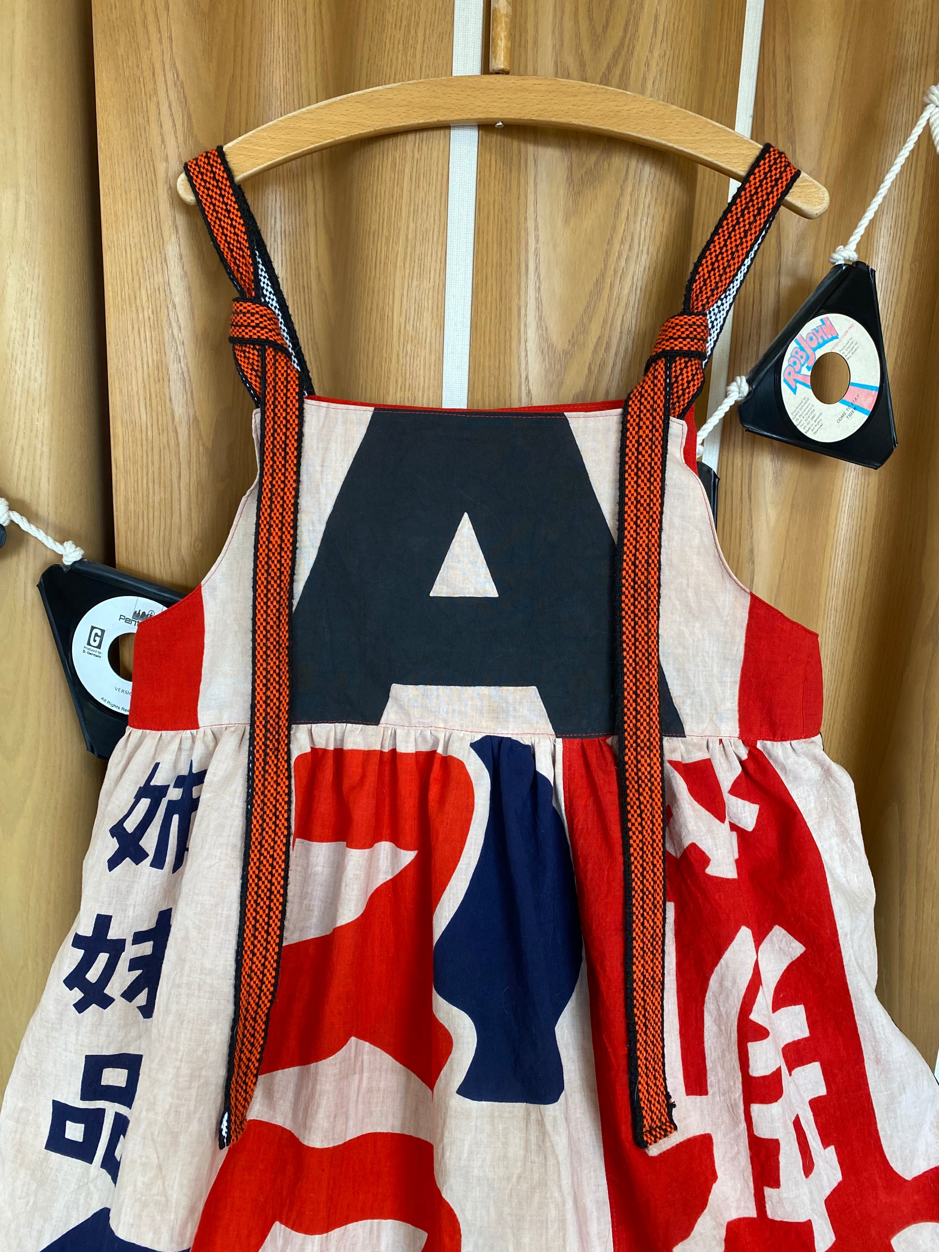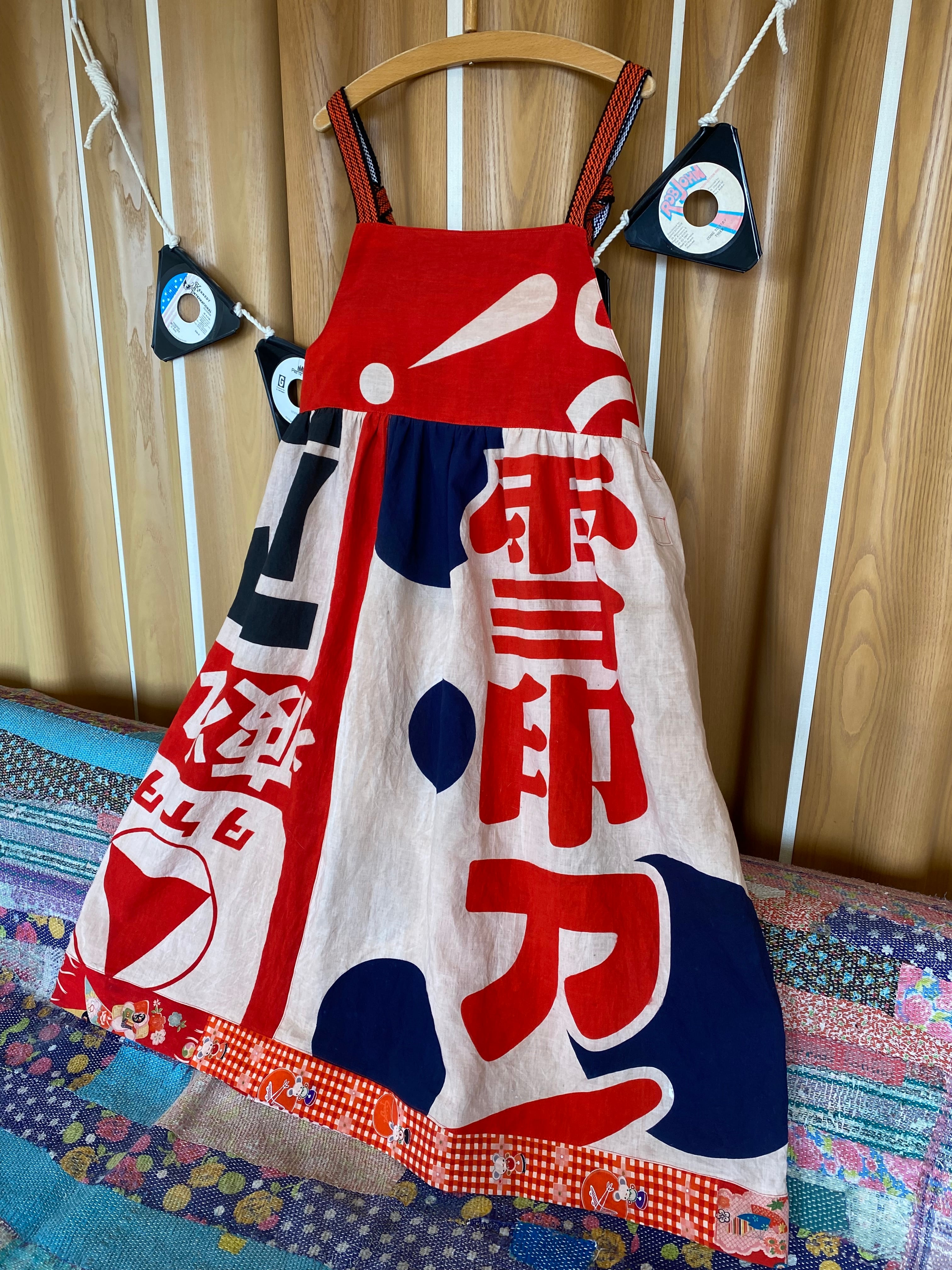 リメイク 昭和レトロ広告旗のぼり旗柿渋染めリメイクジャンドレワンピース
