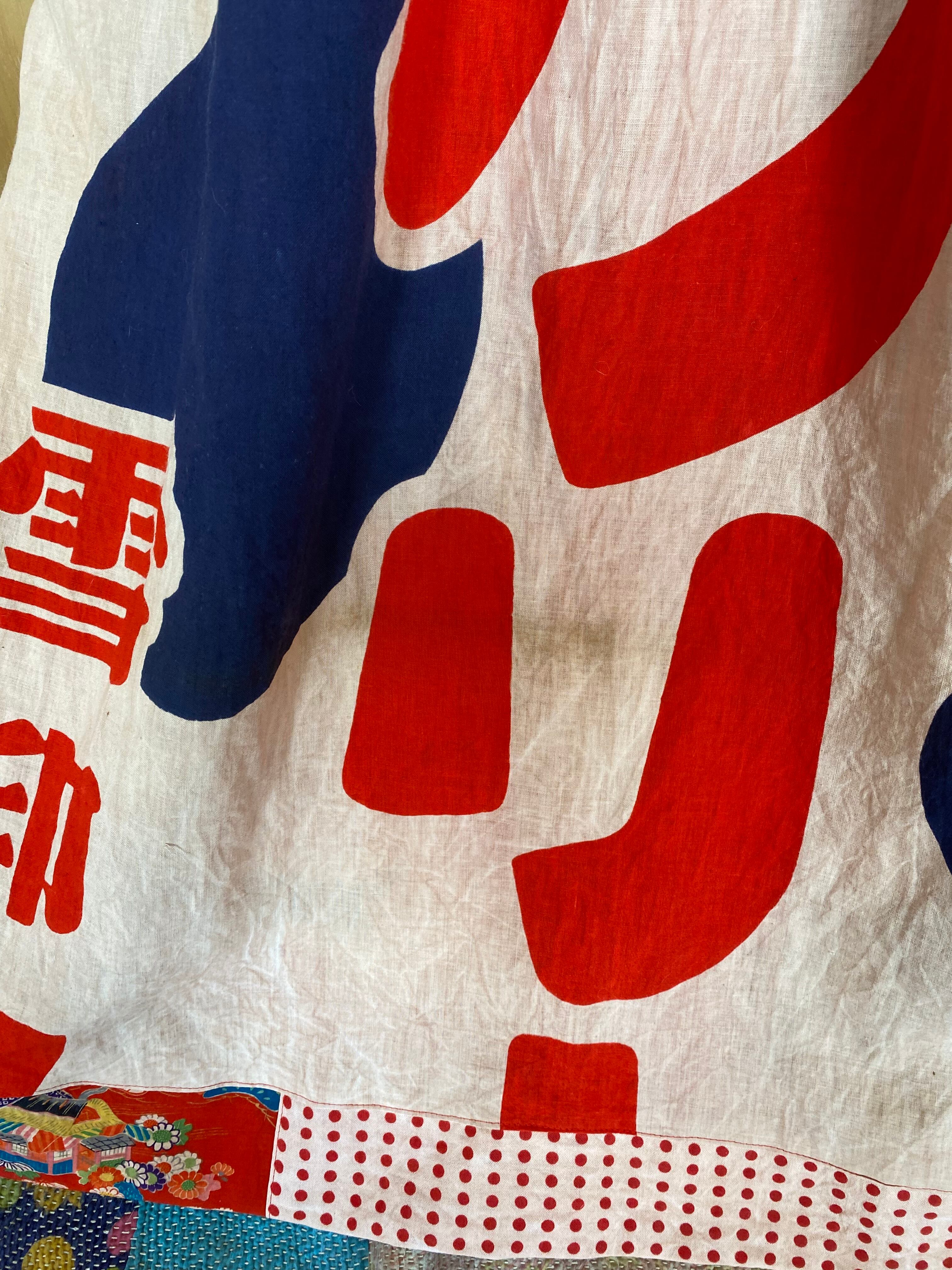 画像にありますように、手染めですのでムラがありますのと、古い旗ですので、汚れがあります。