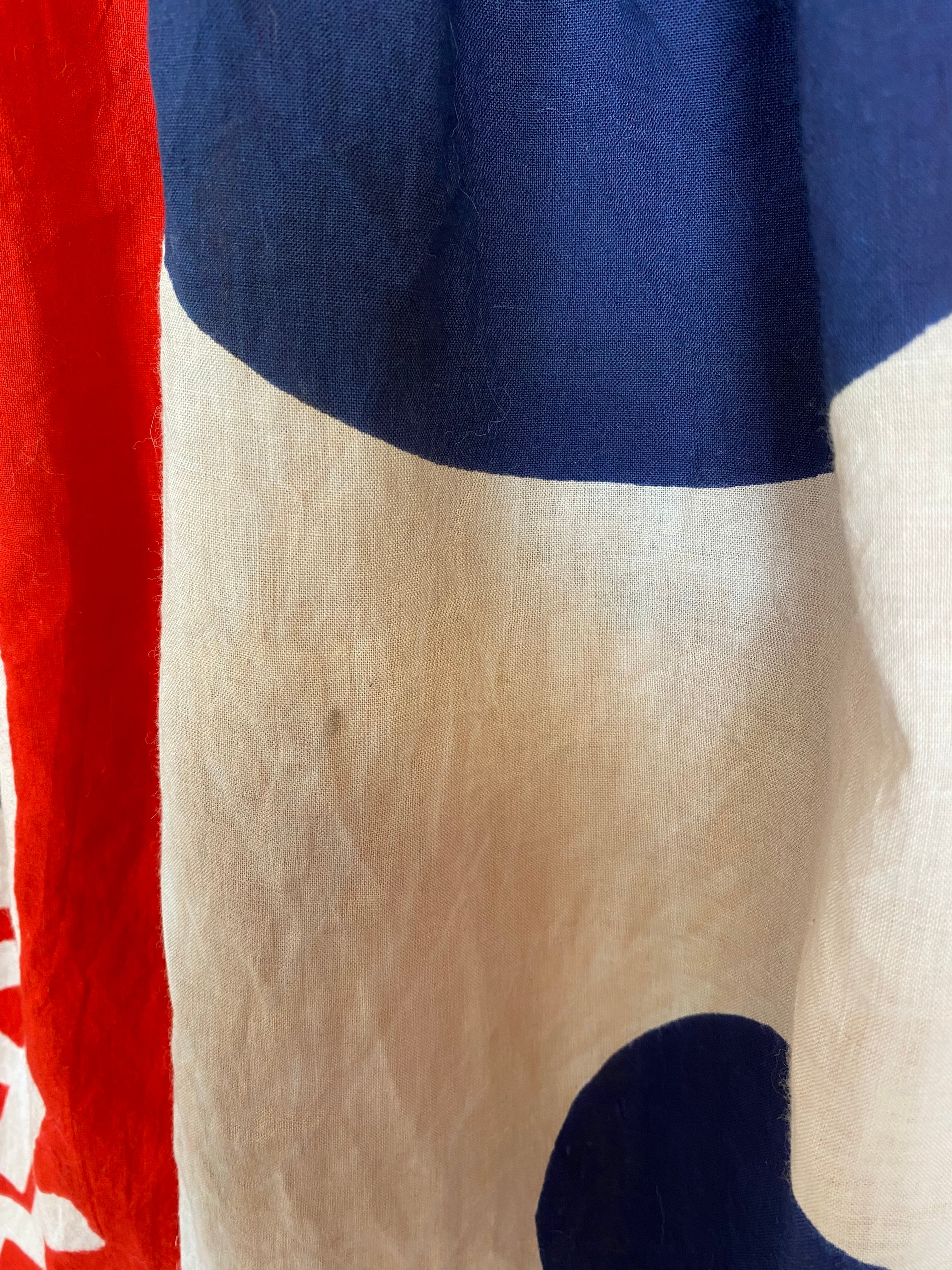 As you can see in the image, it is hand-dyed, so there are some unevenness, and since it is an old flag, there are some stains.