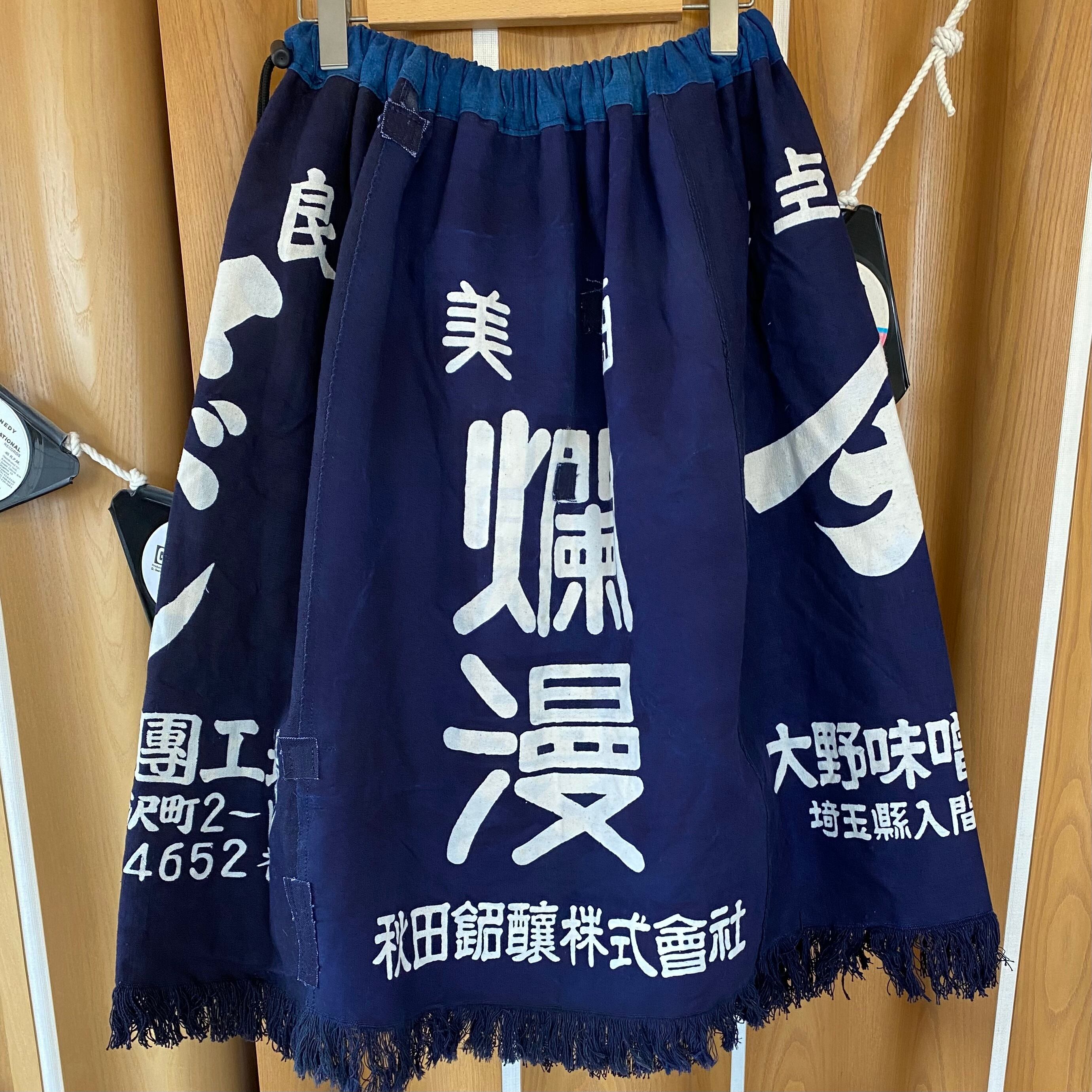 リメイク 昭和レトロ藍染め前掛けリメイク襤褸ポケット付きスカート