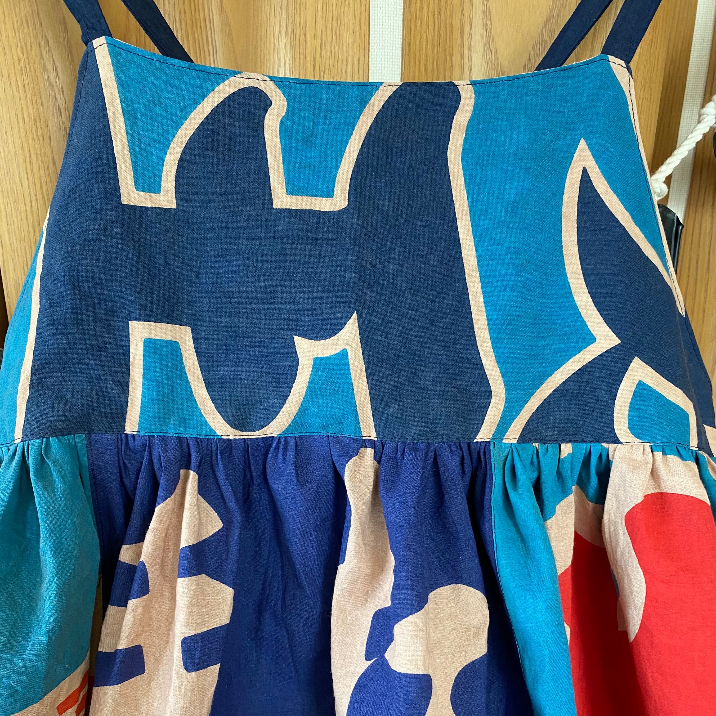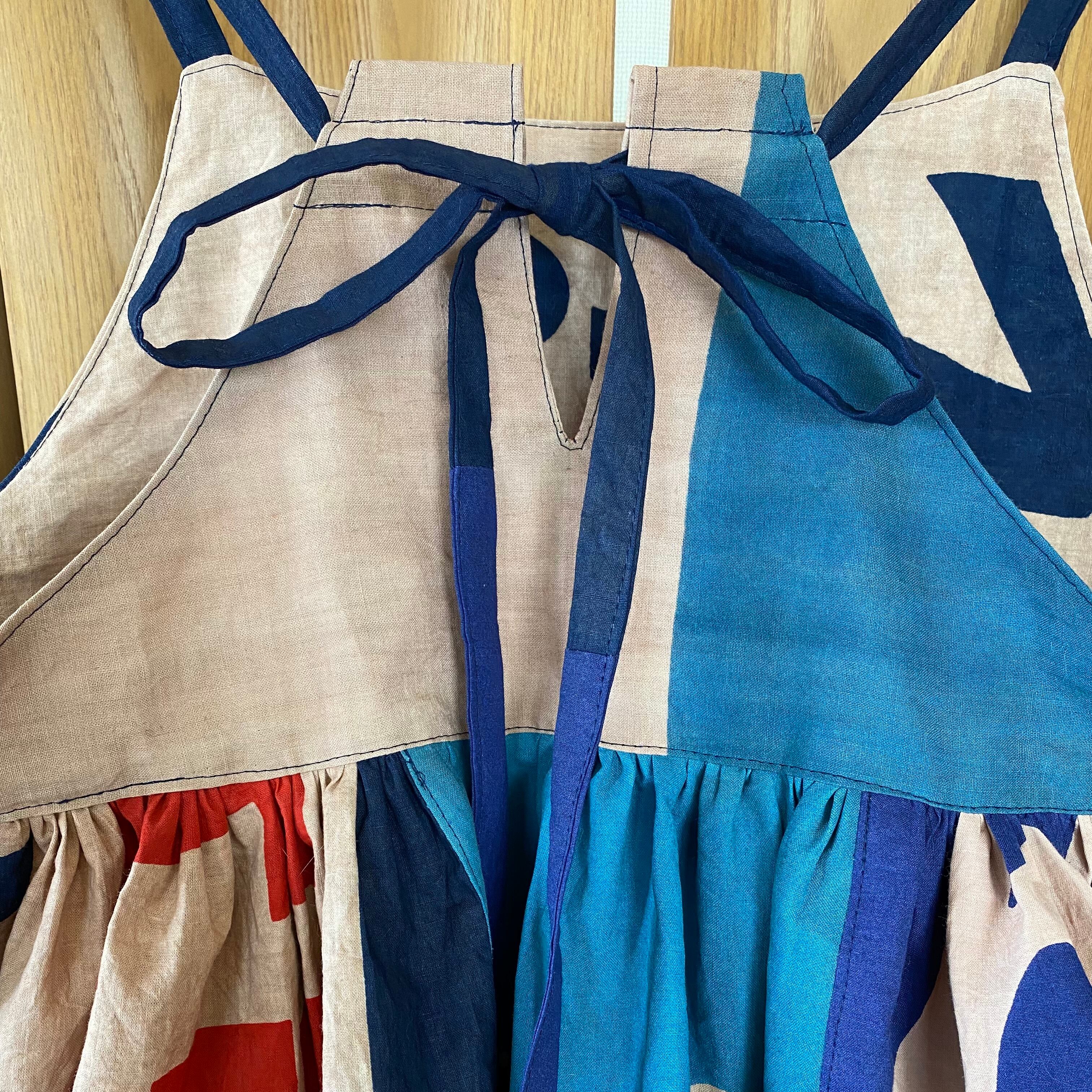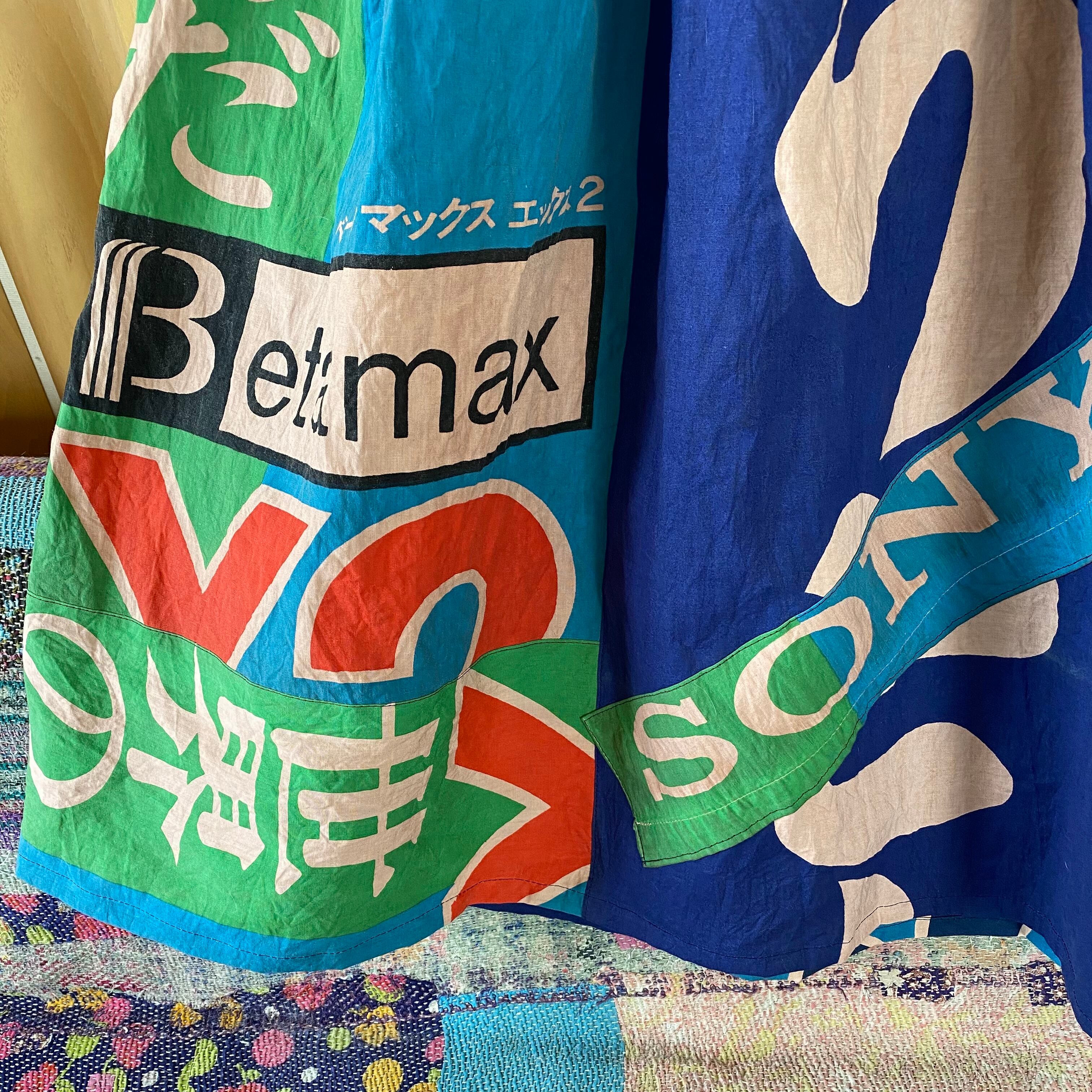 リメイク 昭和レトロ広告旗柿渋染めリメイクリボンジャンドレ