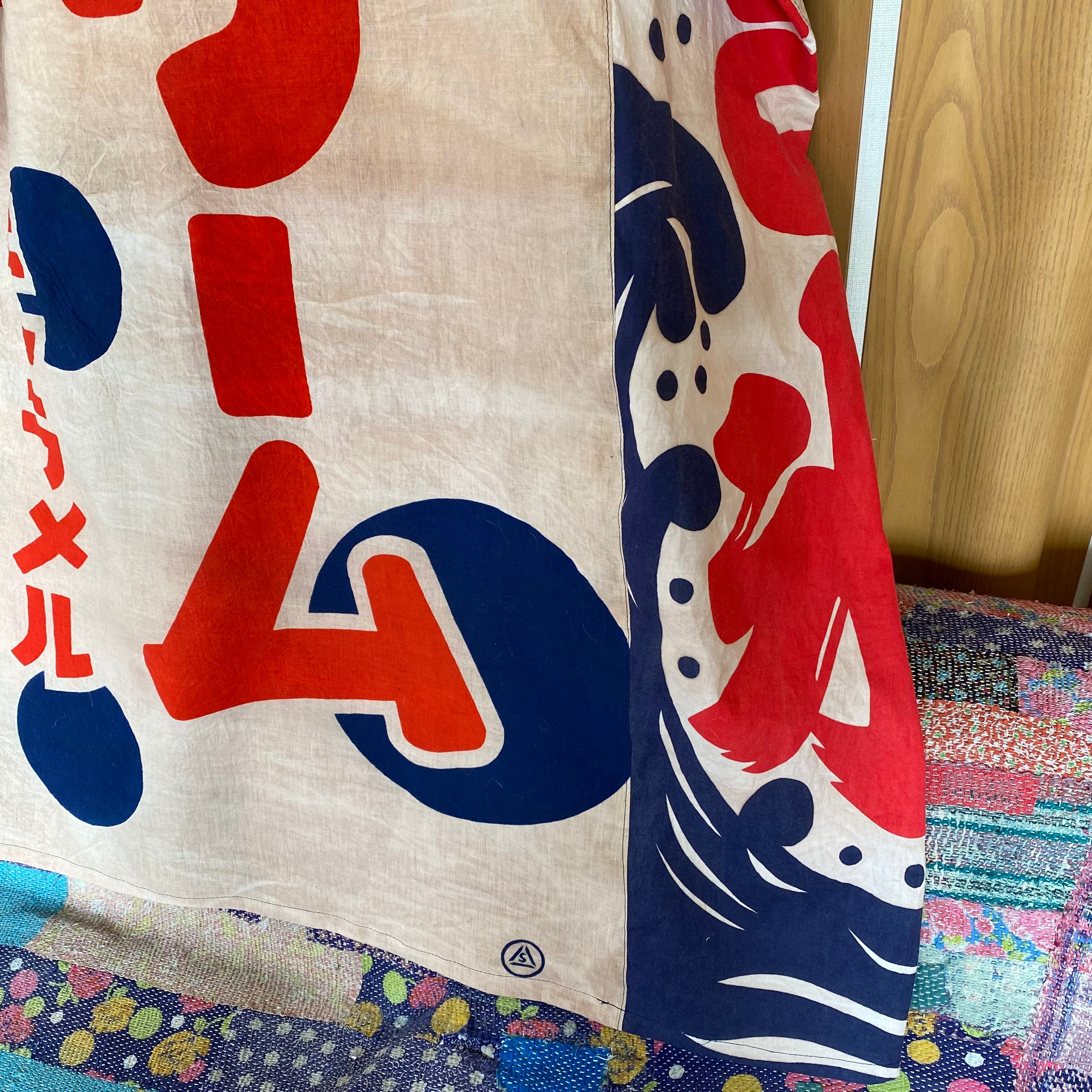 リメイク 昭和レトロ広告旗柿渋染めリメイクBIGロングワンピース