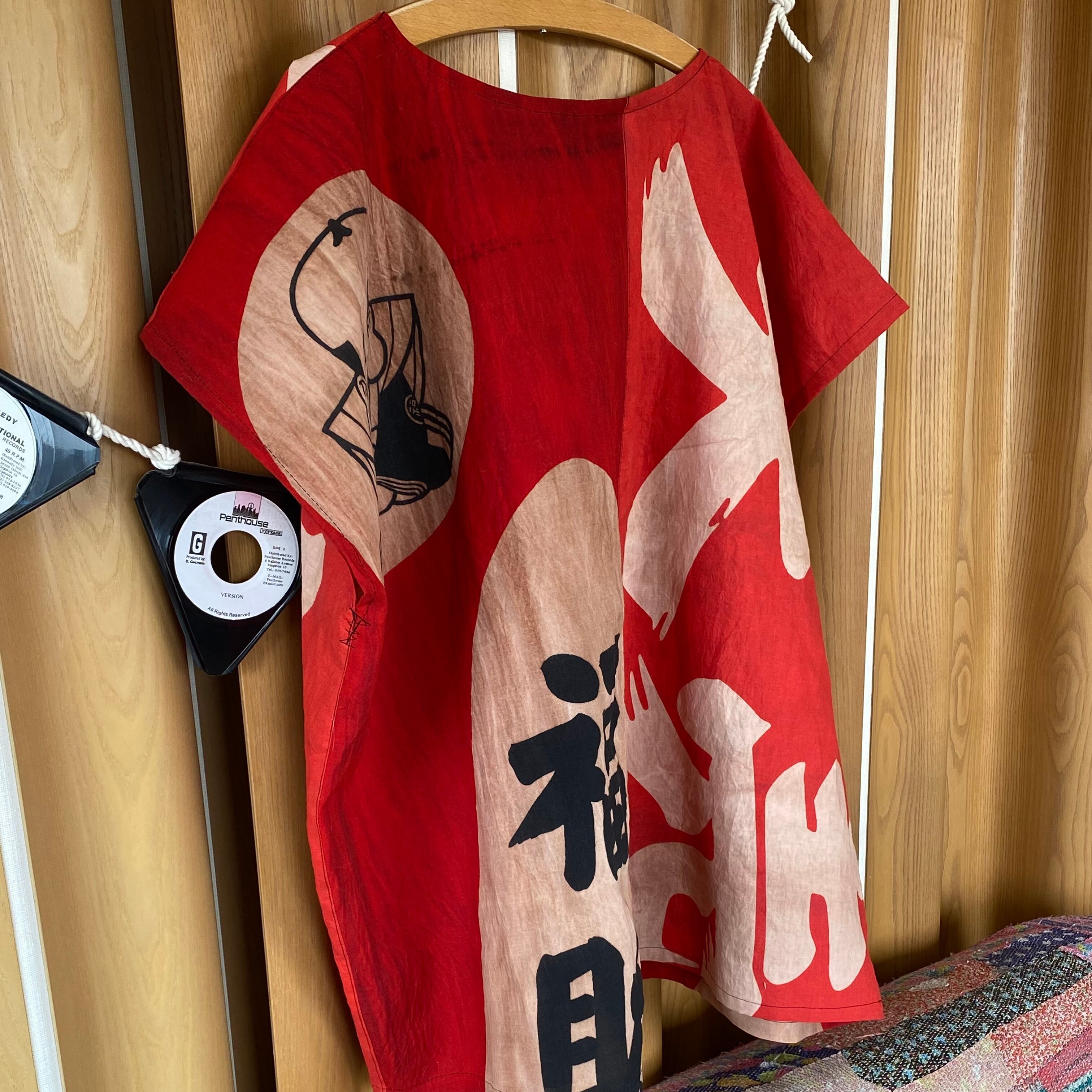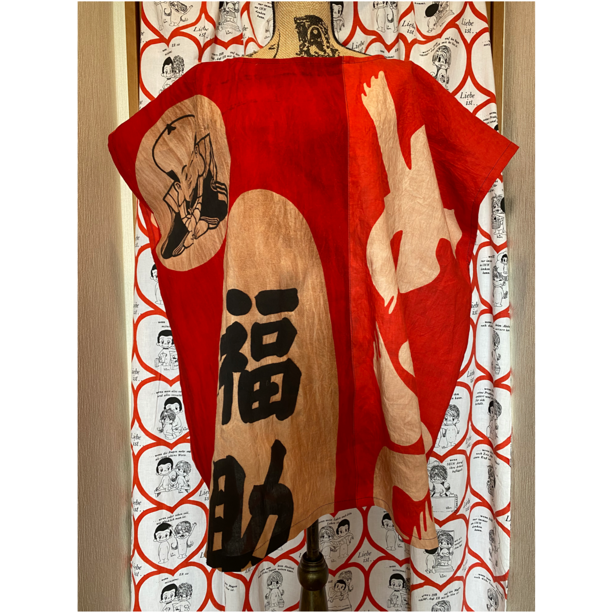リメイク 昭和レトロ広告旗柿渋染めリメイクBIGチュニック