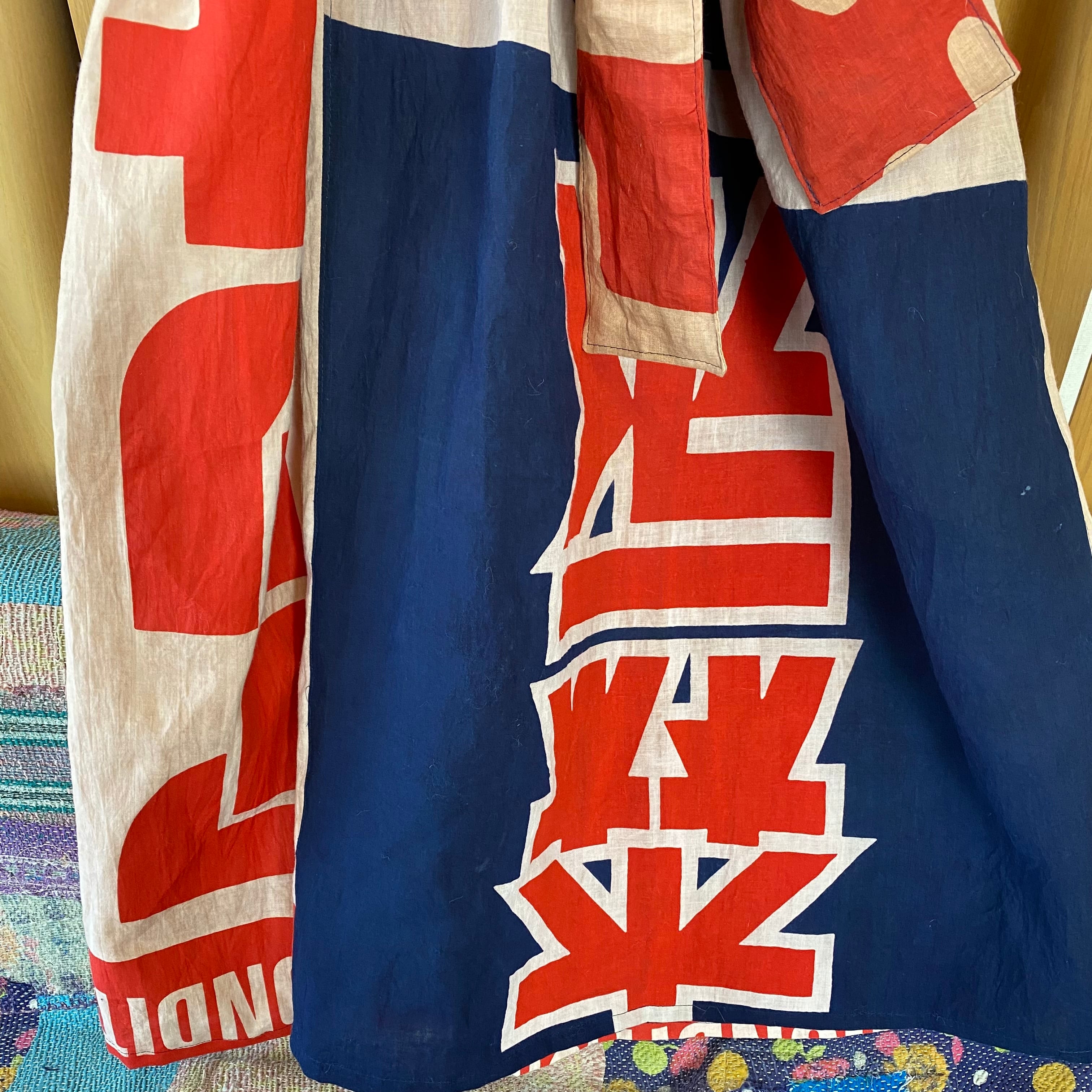 リメイク 昭和レトロ広告旗柿渋染めリメイクリボンベルト付きワンピース