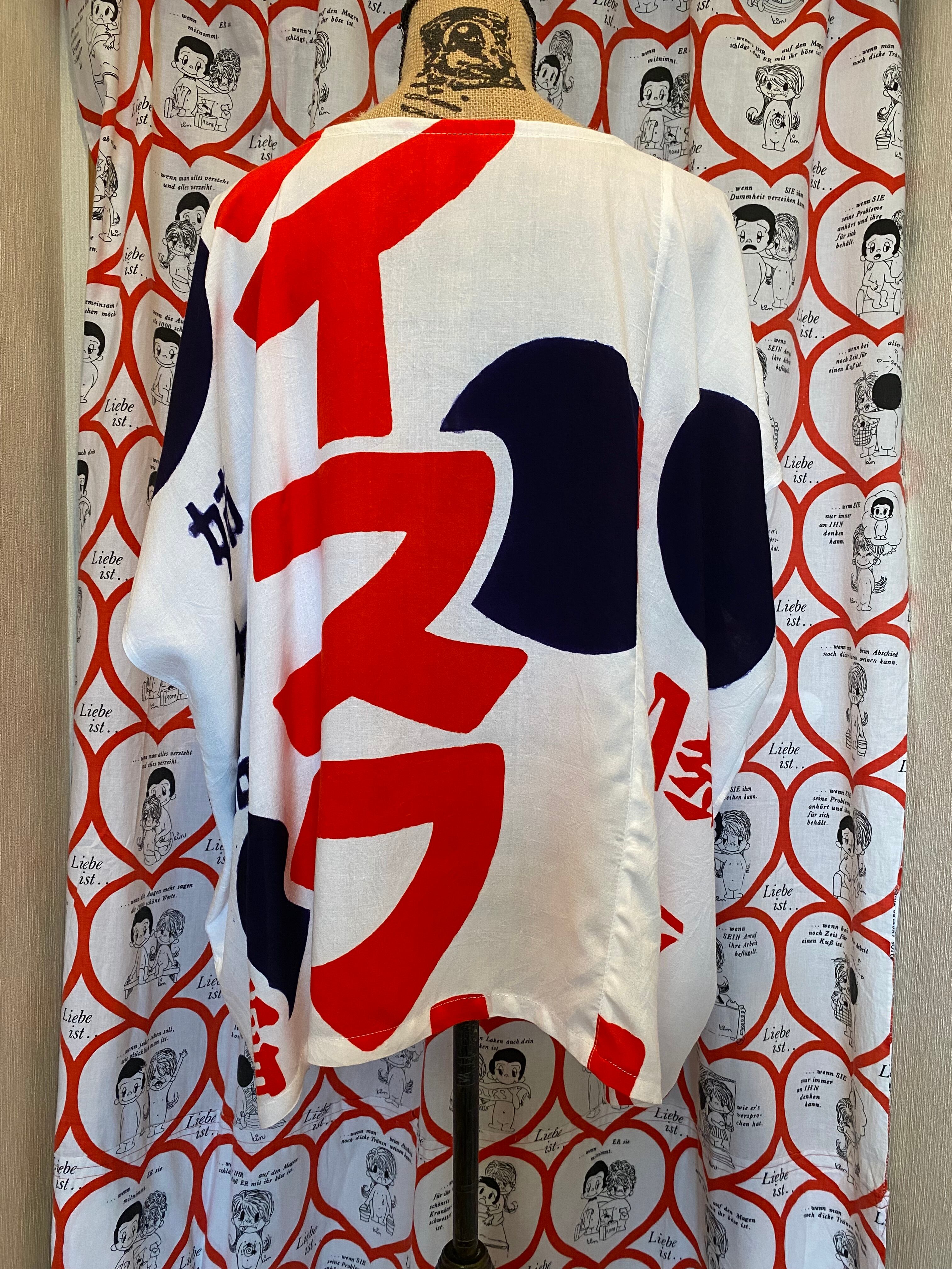 リメイク 昭和レトロ広告旗リメイクポンチョブラウス